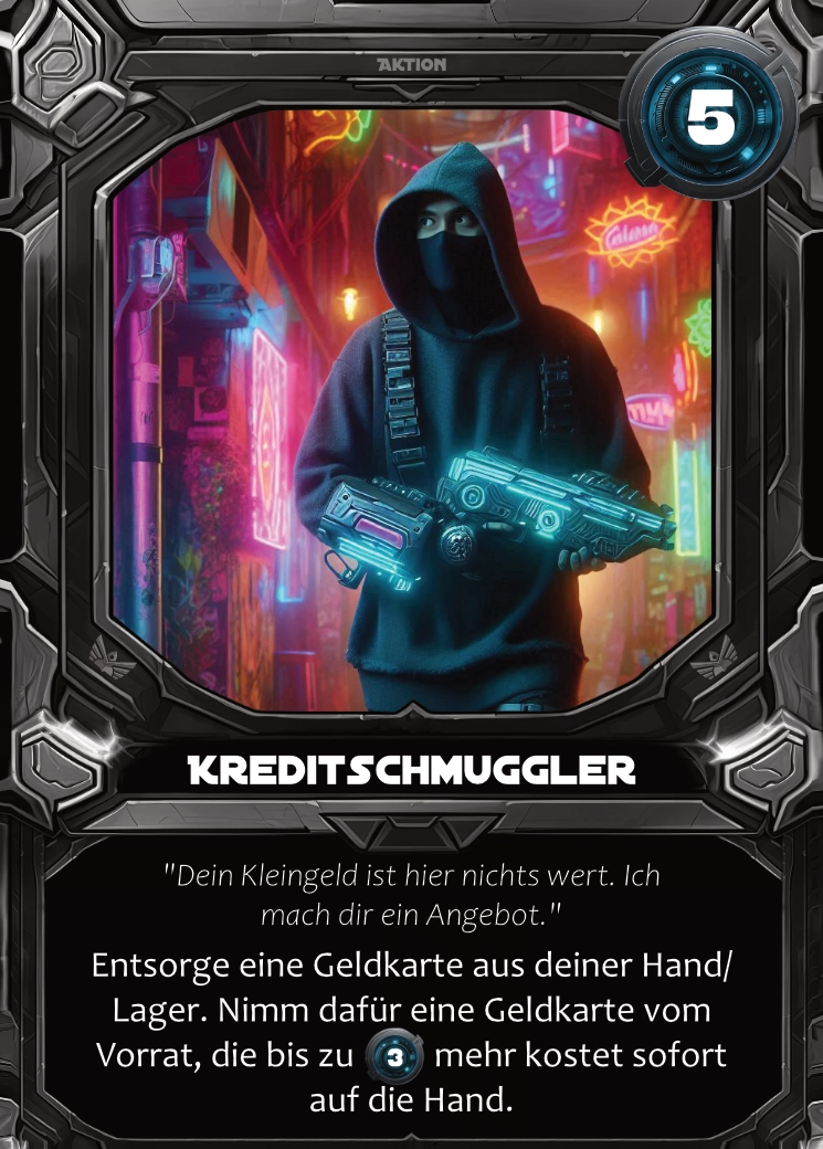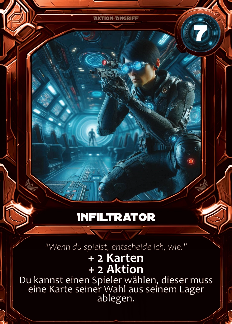 Von Energie und Aktionskarten bis zu Kreaturen, Modulen und Angriffen: Jede Karte erfüllt einen klaren taktischen Zweck und kann Teil mächtiger Kombos werden. Durch präzise Symbole und starke Designs entsteht ein intensives Sci-Fi-Deckbuilder-Feeling, das jede Partie einzigartig macht.