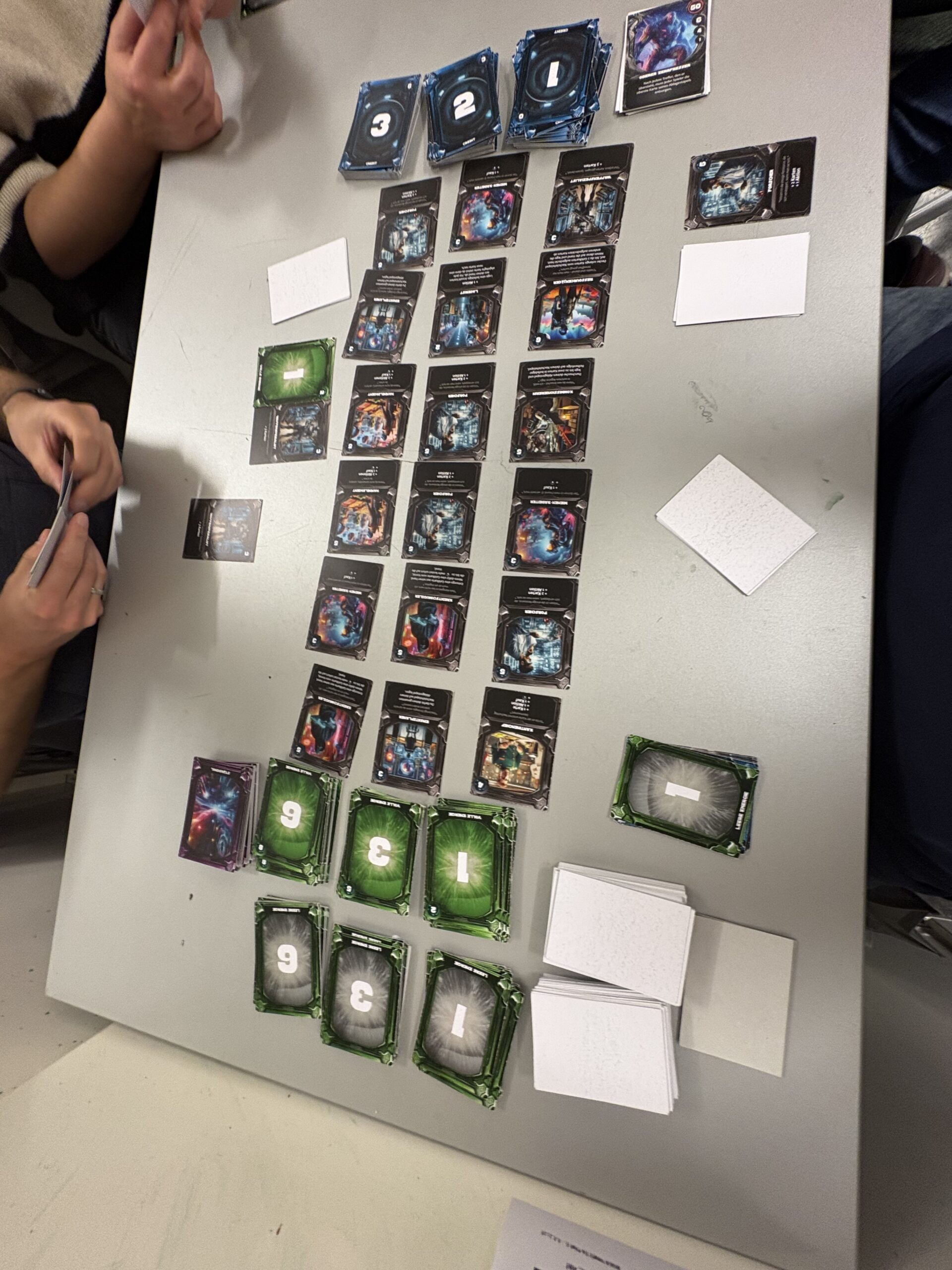 Der erste Prototyp ist nun fertiggestellt – noch schlicht, ohne Rückseite, ohne abgerundete Ecken und ohne Veredelung. Der Fokus lag zunächst ganz auf der Funktionsprüfung. In Familie, Freundes- und Bekanntenkreis fanden sich schnell begeisterte Testspieler, die bereits mehrere erfolgreiche Proberunden absolviert haben. Die ersten Rückmeldungen fallen vielversprechend aus.